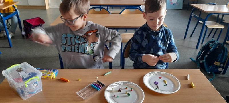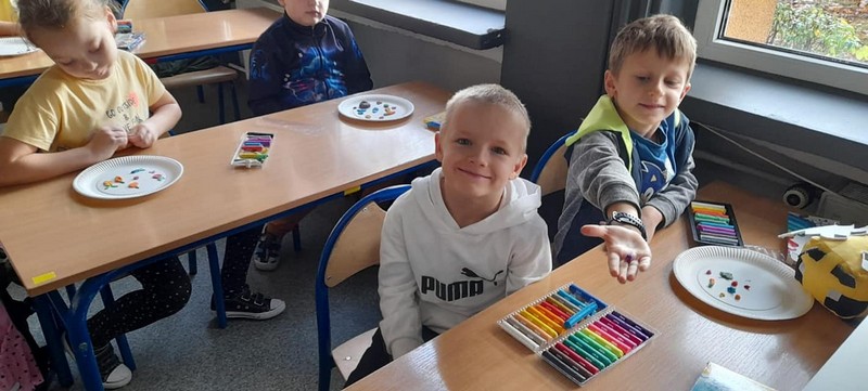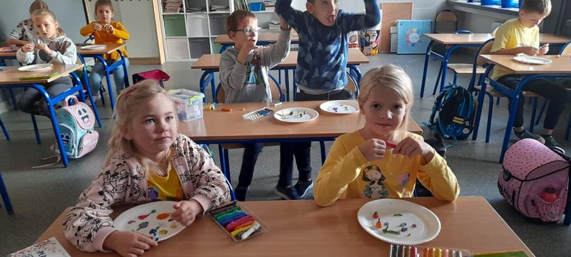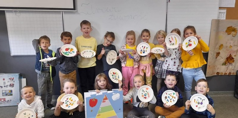25 października w klasie 1c odbyła się lekcja na temat zdrowego żywienia. Uczniowie aktywnie brali udział w układaniu piramidy żywieniowej. Lepienie z plasteliny zdrowego posiłku na papierowych talerzykach dawało dzieciom dużo radości.