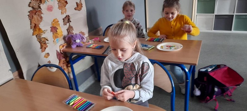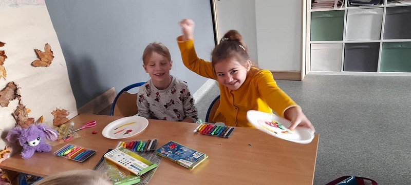 W świetlicy szkolnej odbywają się różne zajęcia: zajęcia plastyczne - malowanie farbami, zajęcia artystyczne - robienie bukietu z jesiennych liści , czytanie bajek , gry w szachy. Uczniowie ćwiczą koncentracją, ucza się i bawią się.