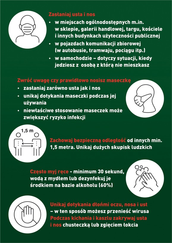 że na terenie szkoły nosimy maseczki. Wchodząc do szkoły, dezynfekujemy ręce.