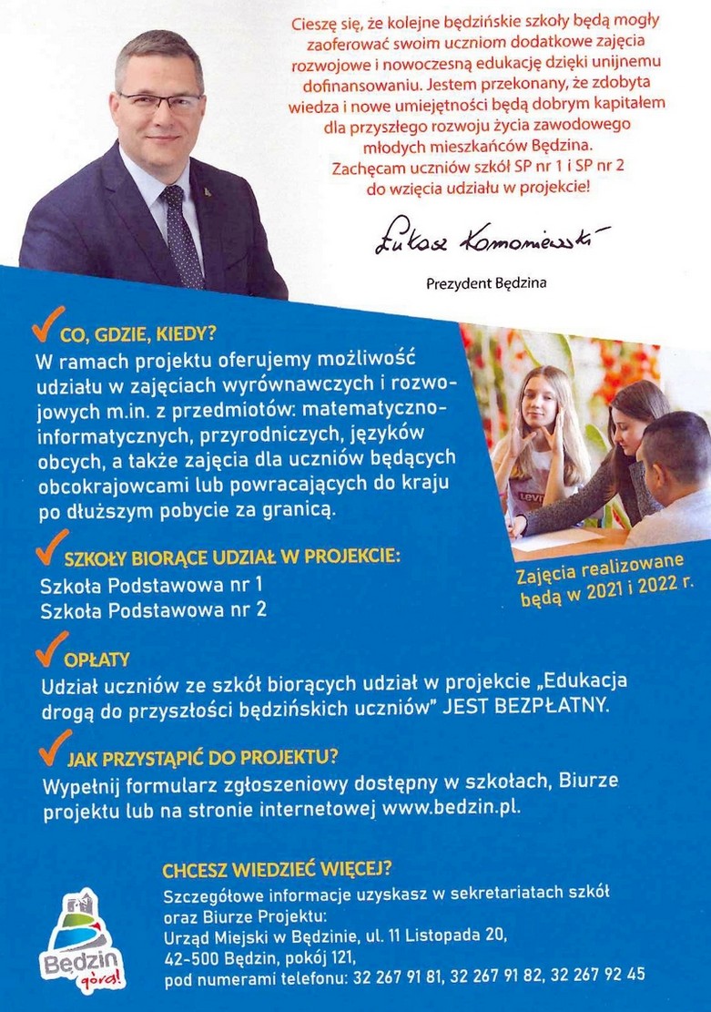 "Edukacja drogą do przyszłości będzińskich uczniów."