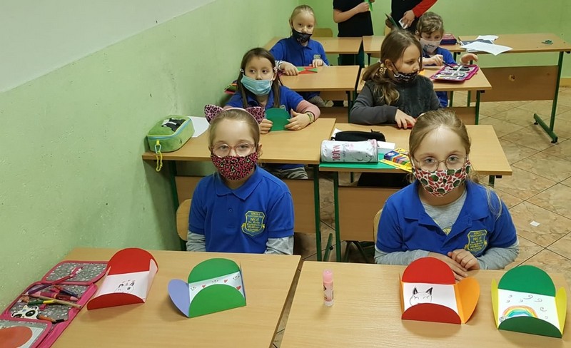 Z okazji Dnia Kobiet w świetlicy szkolnej dzieci przygotowały kolorowe laurki.