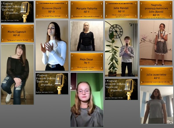 Dnia 1 grudnia 2020 r. odbyło się podsumowanie I Festiwalu Polskiej Piosenki "Zanim się pojawiłeś..." organizowanego przez naszą szkołę dla uczniów będzińskich szkół podstawowych. Zadaniem uczestników było nagrać własne wykonanie piosenki, która swoją premierę miała w XX wieku. Wykonania oceniało jury w składzie: dr hab. Ludwika Konieczna-Nowak - wykładowca Akademii Muzycznej w Katowicach, Grażyna Dzwonowska - instruktor śpiewu oraz Aleksandra Korzec - nasza absolwentka, laureatka wielu konkursów wokalnych i aktorskich.