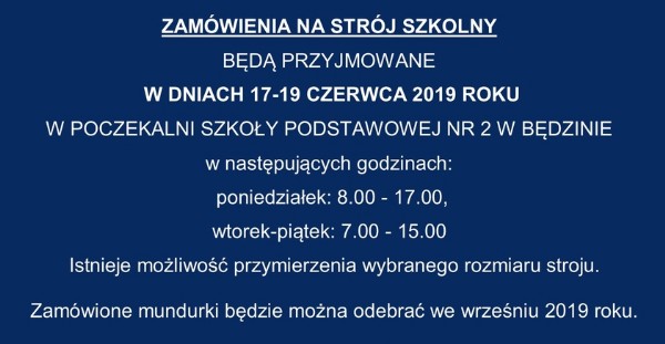 Szkoły Podstawowej nr 2 w Będzinie informuje, że w dniu 24.04.2019r. będą