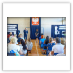 Część artystyczna na sali gimnastycznej. Po akademii wychowawcy wraz z uczniami udają się do klas.